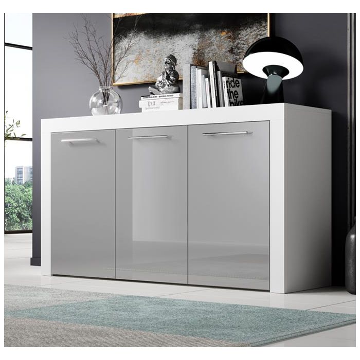 Deze moderne dressoir is elegant en zeer praktisch. Je kunt er van alles in opbergen, zoals: serviesgoed, glaswerk, tafellinnen, bestek, of andere voorwerpen. De structuur en de deurtjes van dit dressoir zijn gemaakt van glanzend melamine.