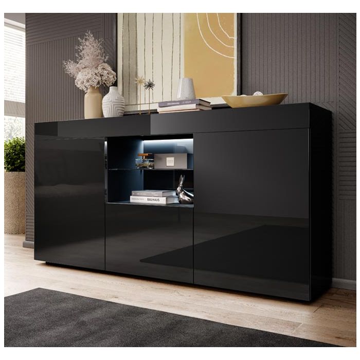Dressoir model Sefora - glans Zwart 135x72cm.
