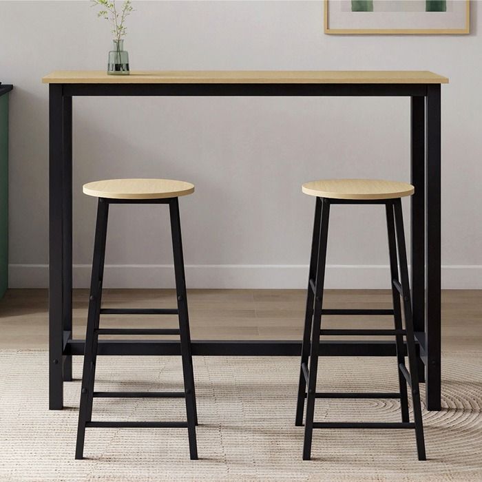 Bartafel met 2 Barkrukken Zwart en Sonoma 120 cm Ani