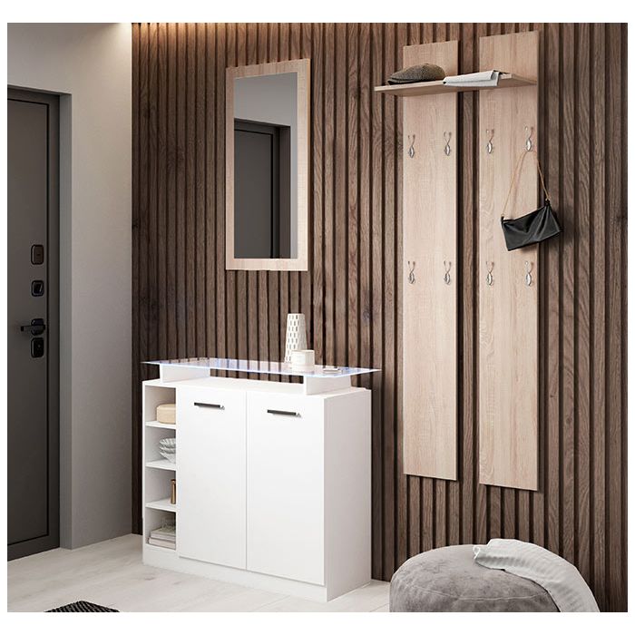 Combinatie halmeubel spiegel kapstok Paola 2P wit en sonoma