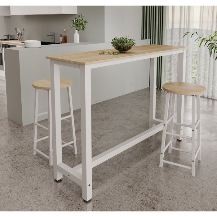 Bartafel met 2 Barkrukken Wit en Sonoma 140 cm Ani