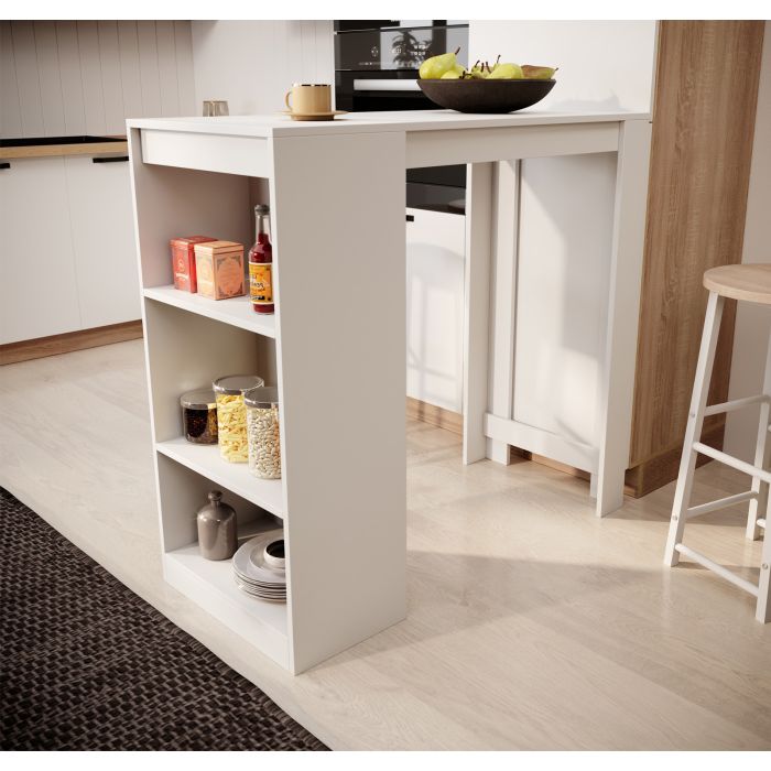 Ontdek deze bartafel die je leefruimte optimaal zal benutten. De strakke lijnen en eigentijdse afwerking passen in elk interieur. Creëer een gezellige plek voor je ontbijt, lunch of informele ruimte om je vrienden te ontvangen. Gebruik de drie opbergvakken aan de zijkant en win extra ruimte in je huis.