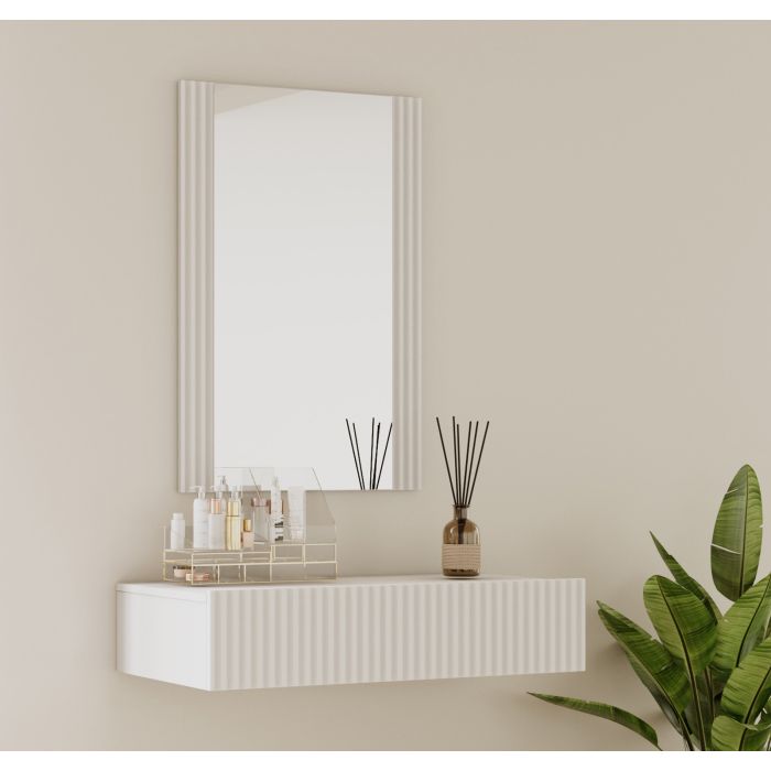 Kaptafel Wit geribbeld met spiegel en lade Velia