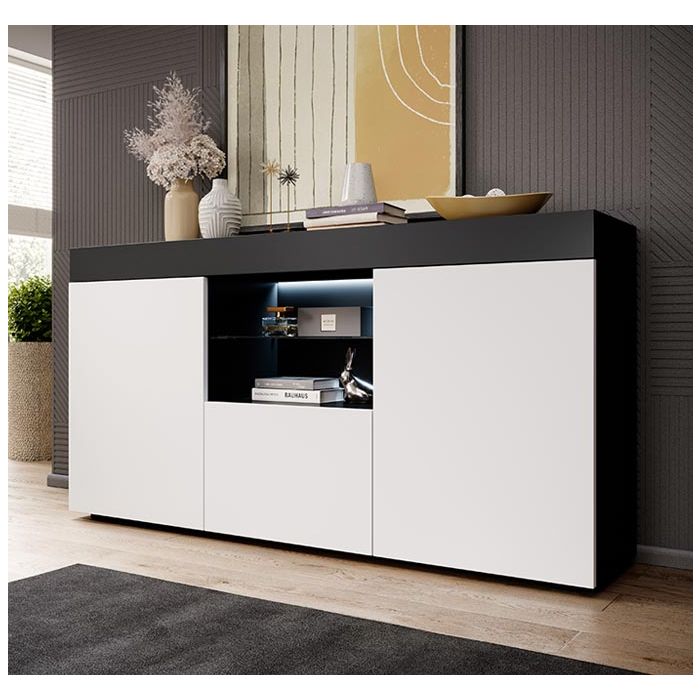 Dressoir model Sefora - mat zwart en wit 135x73cm.