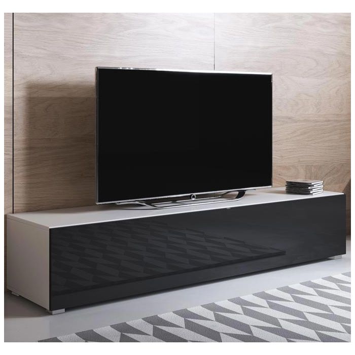 TV-Meubel model Luke H2 met standaard poten (160x32cm) - Wit en Zwart