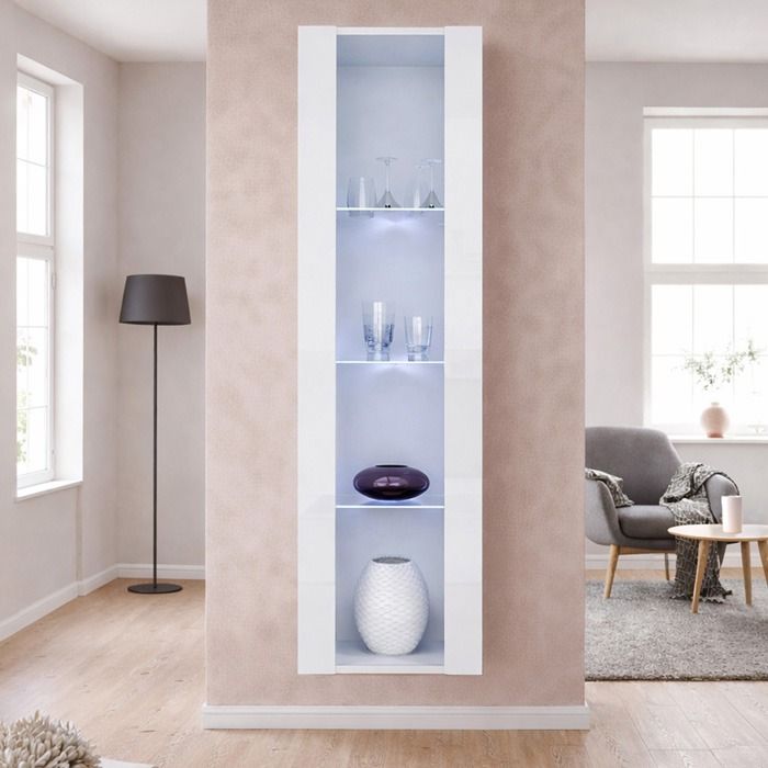 Vitrinekast Wit met LED-verlichting 40x170cm Model Nora V5