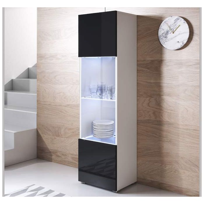 Vitrinekast model Luke V6 met standaard poten (40x167cm) - Wit en Zwart