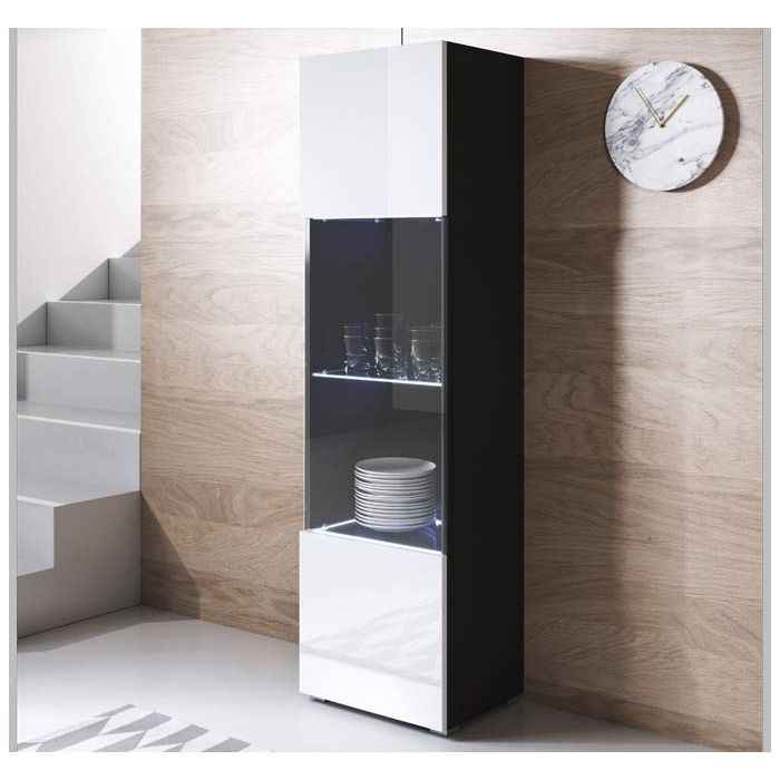 Vitrinekast model Luke V6 met standaard poten (40x167cm) - Zwart en Wit