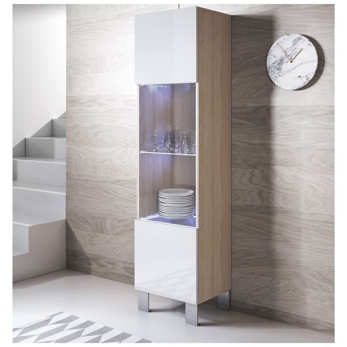 Vitrinekast model Luke V6 met aluminium poten (40x177cm) - Sonoma en Wit